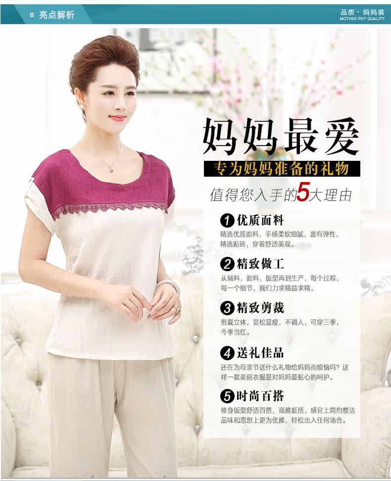 中老年女装夏装套装40-50岁妈妈装T恤裤子两件套中年女装短袖套装