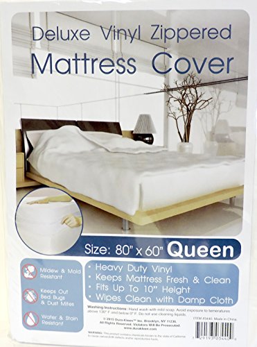 -. Title : Queen Size Zippered Mattress Cover Vinyl Keeps Out Bed Bugs & Dust Mites Water Resistant Protector 10" Wide 80" X 60"