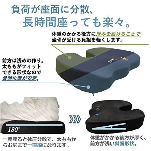 U자 구조 닥터 씨트는 U자가 되고 있고, 후방 중앙부에 공간을 만드는 것에 따라 미고 있어 뼈(미골)의 접촉을 막습니다.사람이 앉았 때의 하중을 걸려(놓여) 분(쪽,편)를 계산하여 허벅지 뒤에 대하는 전방 부분을 천꼬치,하중이 제일 걸리는 후방 부분은 깊게 만들어져 있습니다.아무것도 없는 상태의 체누름의 집중 도를 100%그렇다면,Dr.seat 를 깐 경우는 대강 20%까지 분산 시키는 것 를 할 수 있습니다.