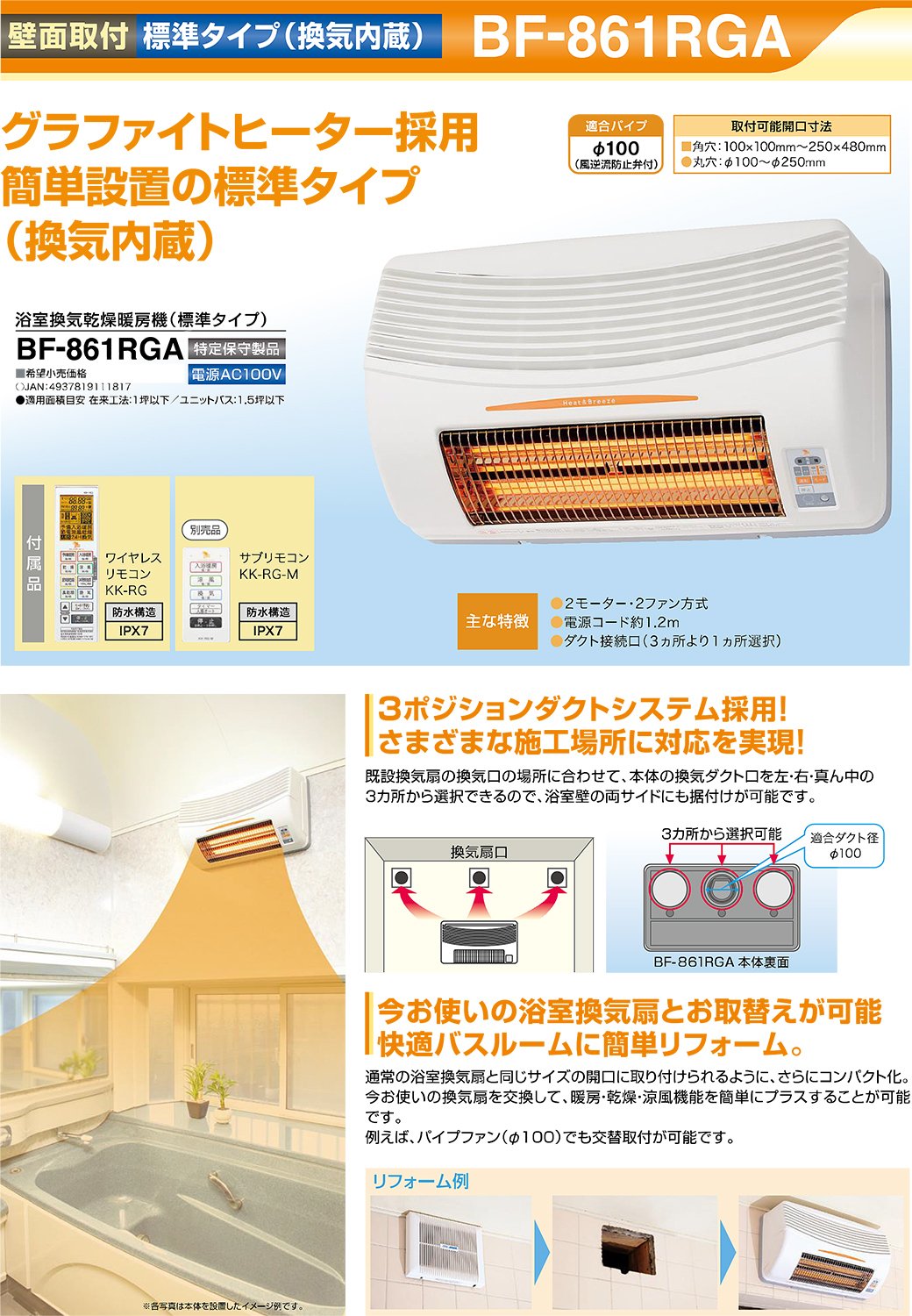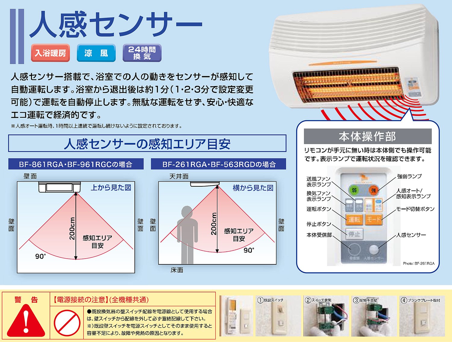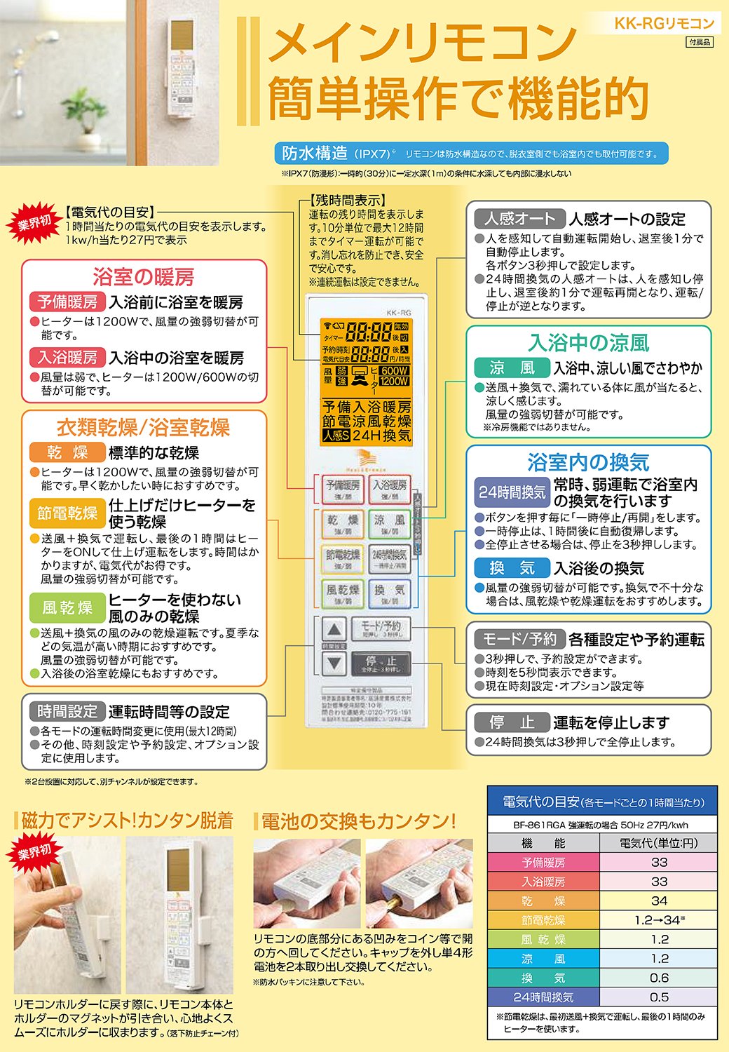 ● Noise: 【During strong driving】 Preliminary heating = 45/45 dB, Bathing heating = 31/31 dB, Drying · Power saving drying · Air drying · Cool breeze = 46/46 dB, Ventilation = 40/40 dB, 24 hours Ventilation = 31/30 dB,