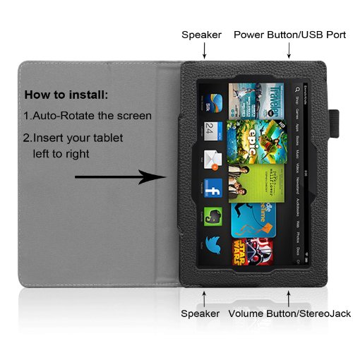 -. Binding : Personal Computers -. Brand : Fintie -. Feature : Built from durable PU (synthetic) leather with soft Microfiber interior to prevent scratches. / Cover contains flip capability to transform the case into a horizontal viewing stand / Interior pocket opens for easy insertion of device and includes velcro flap to secure it in place / Built-in magnetic strip provides auto sleep/wake feature.Designed with a smart holder for stylus/pen / Available in a variety of bright and fun colors. All products include a 12 month manufacturer warranty. -. Label : Fintie -. Manufacturer : Fintie -. MPN : parts -. PartNumber : parts -. ProductGroup : CE -. ProductTypeName : CARRYING_CASE_OR_BAG -. Publisher : Fintie -. Size : 7 Inch -. Studio : Fintie -. Title : Fintie Folio Case for Kindle Fire HD 7" (2013 Old Model)