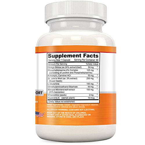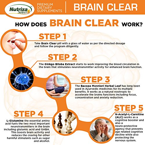 -. Feature : BRAIN CLEAR IS A POWERFUL & POTENT NEURO COGNITIVE FOCUS SUPPLEMENT that enhances memory, focus, concentration and alertness fast! / NATURAL CEREBRAL MEMORY ENHANCEMENT formula includes Ginkgo Biloba, St. John's Wort and Ayurvedic herbs! Can help with Anxiety and over all wellbeing! / NUTRIZA BRAIN CLEAR blend helps reduce stress by IMPROVING BRAIN EFFICIENCY and THOUGHT CLARITY to give you that Smart, Limitless feeling! Boost your alpha genius today! / MIND SUPPORT VITAMIN INGREDIENTS & EXTRACTS help reduce brain fog, increases brain energy and improves memory work function! Focus formula for men and women! / MADE IN USA in state-of-the-art GMP Compliant facility with high-quality ingredients; 30 capsules