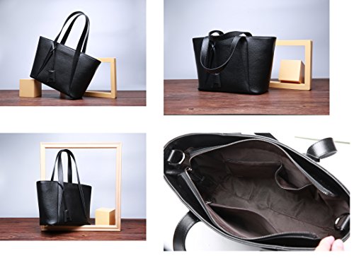 ☆DETAILED INFORMATION: satchel handbags size: 11.8"W x 8.66"H x 4.72"D, handle drop length: 6". The top handle bag is made of high quality Genuine leather. Top zipper closure. Gold tone and flat bottom studs. The incredibly spacious design is perfect for storing all your essentials, and three interior compartments help organize daily things. Exterior back panel zipper pocket for easy access.