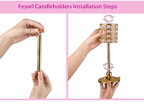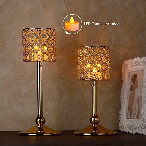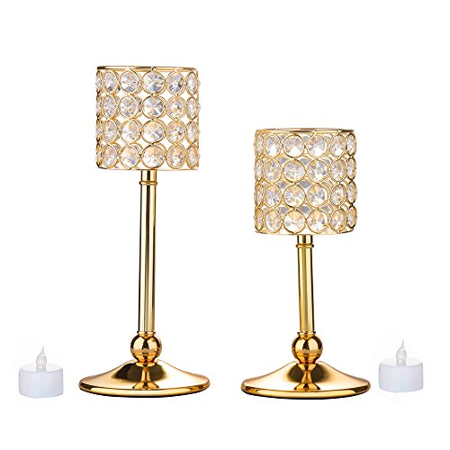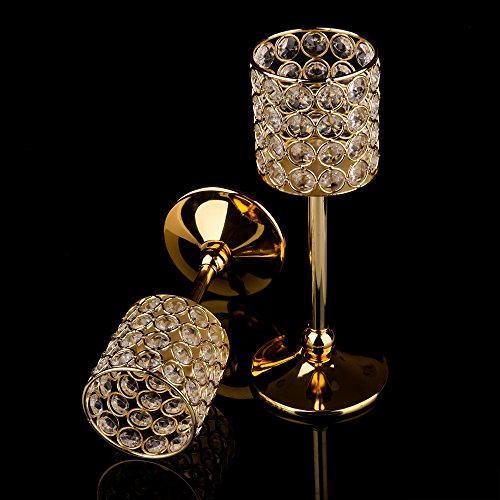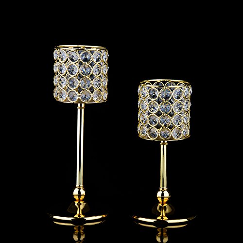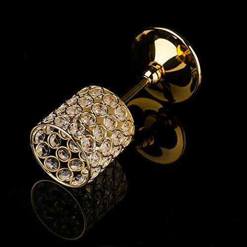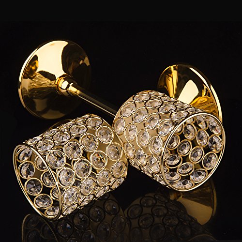 Feyarl Handcrafted Sparkly Cylindrical Crystal Candle Holders, Votive Candle Lantern for Wedding Centerpieces Exquisite Gift Home Decor (Gold)