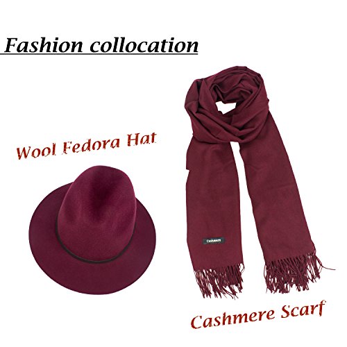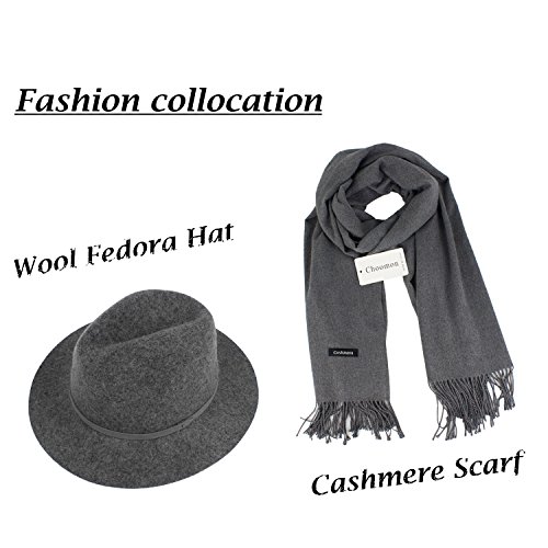 Choomon Women Wool Felt Trilby Fedora Hat Wide Brim Jazz Hat With Simple Band