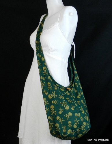 Trendy fashion in a classic hobo design, this fun bag features a skull and crossbones, pirate print...making it a Joly Roger punk rock flavor that livens your outfit. Very functional with a zippered compartment, an inside zippered pocket and a reinforced base that doesn't intrude on this hobo. Size: 14" wide by 11" deep by 7" base, 42" end to end shoulder strapFeature
