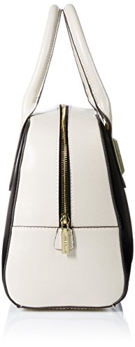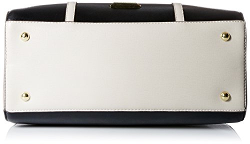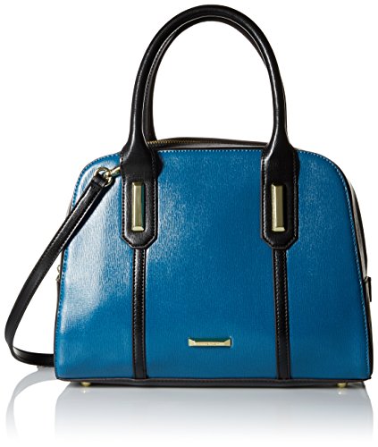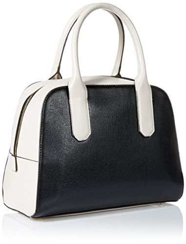 Doctor's-style satchel in saffiano texture featuring color-block paneling and gold-tone hardware and feet