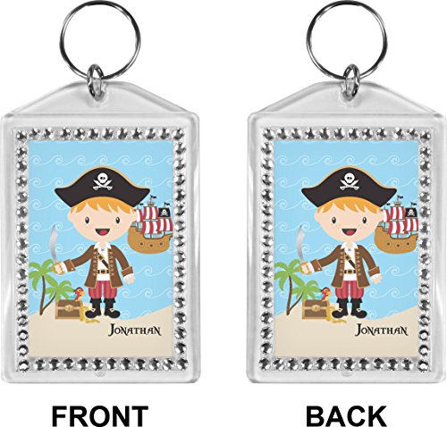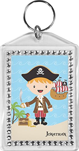 Bling up your keys with our personalized keychains with bejeweled rectangle frames. These are great thoughtful little stocking stuffers or gifts for coworkers, family, and friends. That added touch of personalization really makes them special and the bling gives a glamorous look. The keychains are durable and have rhinestones around the exterior to accent the design on the inside. Attach to your keys with the keychain at the top of the rectangle frame and take your glam on the go!! About the Design Do you a wee laddie that dreams of great adventures on the sea? If yes, then bring his imagination to life with this great pirate design. Our little pirate is set on an ocean shore with his treasure chest, his pirate ship is set off in the background waiting for his return. Personalize this design with your little boy's name, hair and skin color. 1 |