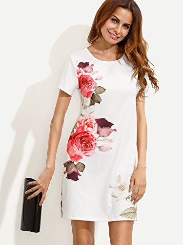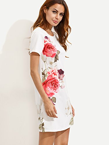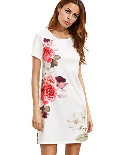 Title : Floerns Women's Flower Print Short Sleeve Casual Shift Dress White M