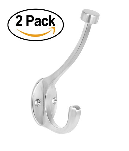 BirdRock Home Traditional Wall Mounted Robe & Towel Hooks | 2 Pack | Dual Hook | Brushed Nickel Towel Robe Hat Coat Hook