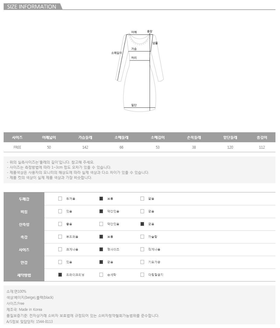 모델의 착용 컬러는 베이지 입니다.