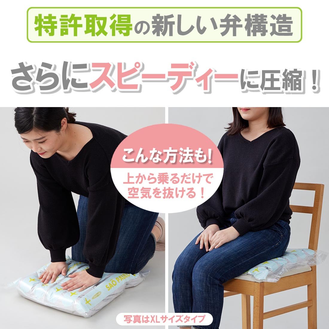 【Speed Compression】 With a new valve structure, the air escapes easier and faster than ever before