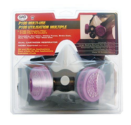 SAS Safety 3650-50 P100 Multi-Use Halfmask Respirator with P100 Filter and Clamshell, Medium