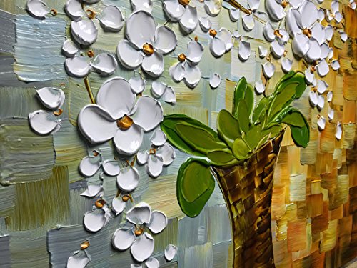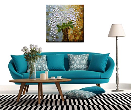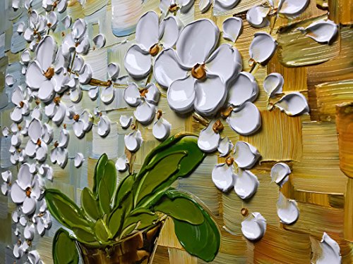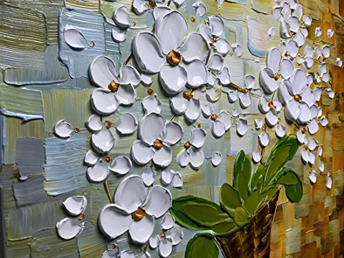 Asdam Art ---white orchid in vase modern impasto palette knife acrylic and oil painting - heavy textured white flowers on blue and brown. To see closeups please click on above images..