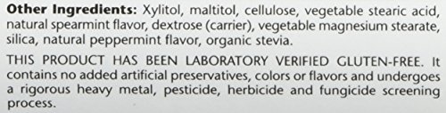Other Ingredients: Xylitol, maltitol, cellulose, Vegetable stearic acid, natural spearmint flavor, dextrose (carrier), Vegetable Magnesium stearate, Silica, natural peppermint flavor, organic stevia.