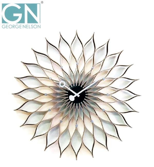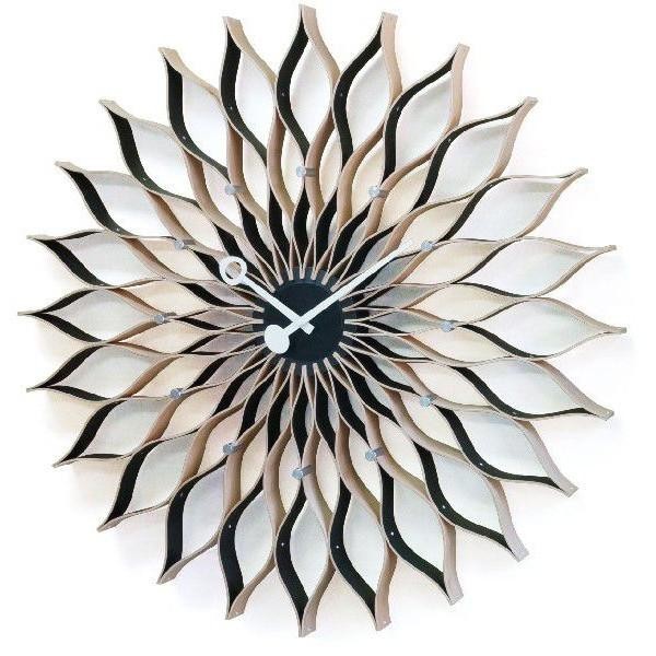 ひまわりをイメージしてデザインされた掛け時計です。世界で最初にプライウッドを利用して製作されたといわれているウォールクロックを復刻しました。直径75cmの存在感は圧倒的!!美しく威厳さえ感じられる程です。 |