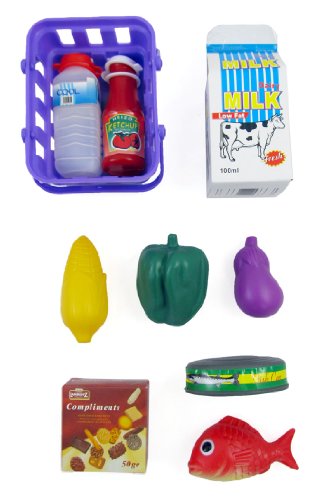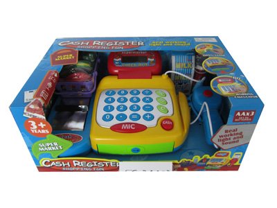 -. Feature : Fun educational cash register with calculator and lockable drawer / Includes checkout scanner, microphone, and movable conveyor belt / Money playset has paper money, round coins, and atm cards / Food playset has 9 different items and a shopping basket / Cash register measures 13" x 12" x 5"
