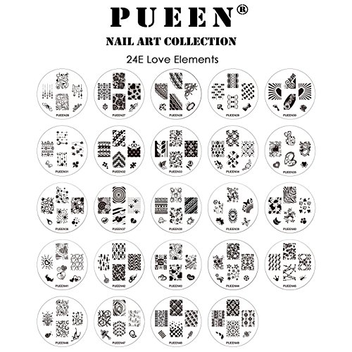 PUEEN Nail Art Stamp Collection Set 24E - LOVE ELEMENTS - NEW Unique Set of 24 Nailart Polish Stamping Manicure Image Plates Accessories Kit (Totaling 144...