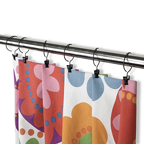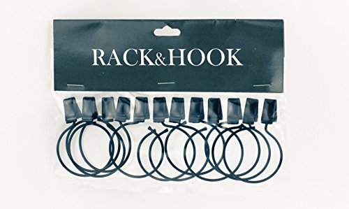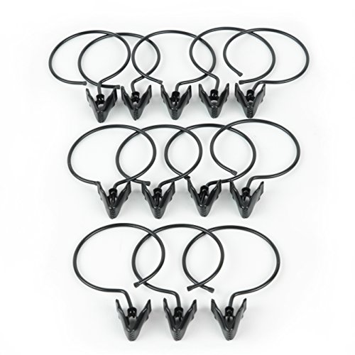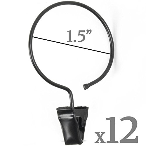 Rack and Hook Decorative Drapery Multipurpose Clip Rings Iron Metal 1.5 Inch Diameter (12, Black)