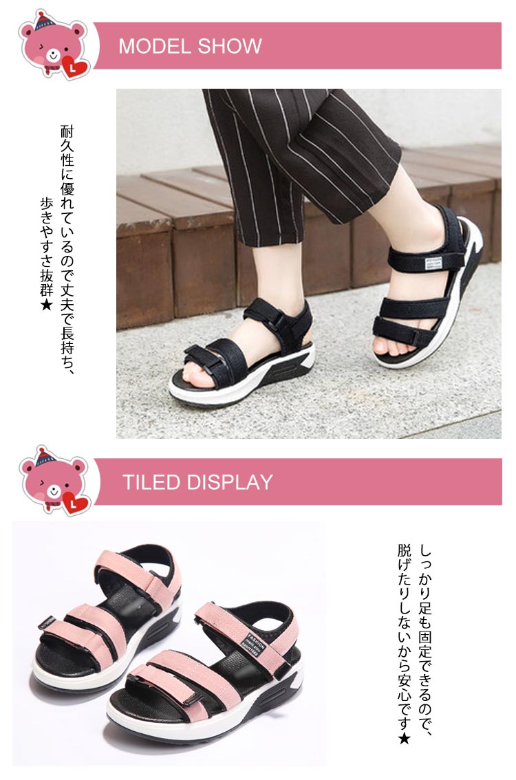 | 耐久性に優れているので丈夫で長持ち、歩きやすさ抜群★しっかり足も固定できるので、脱げたりしないから安心です★ 歩きやすく靴ずれの心配がほとんどありません。夏にピッタリな一足です★ | |