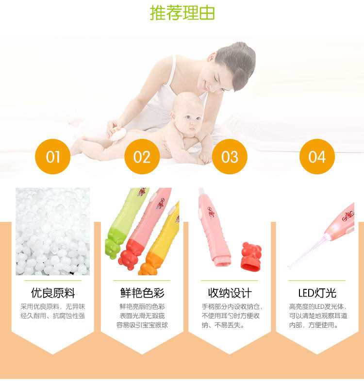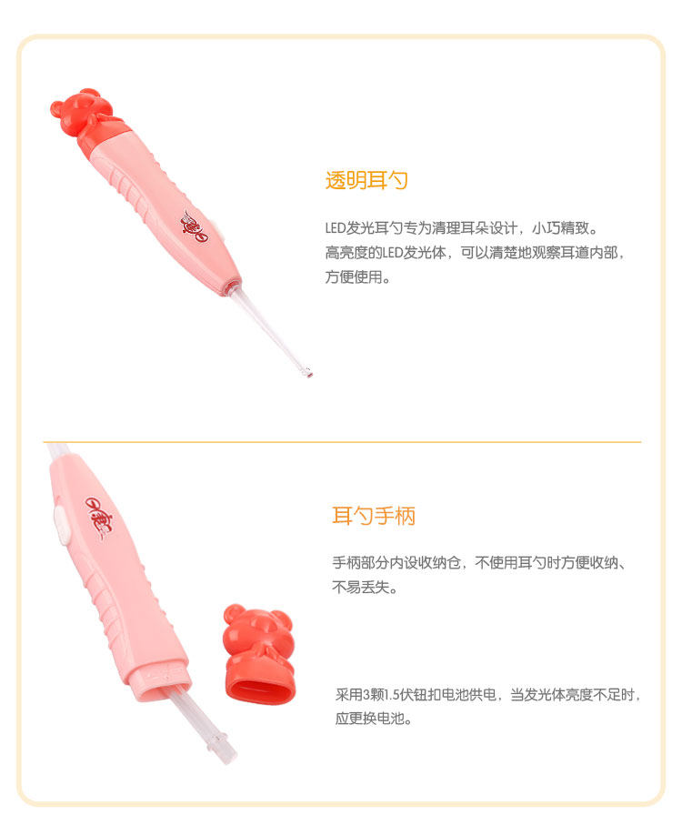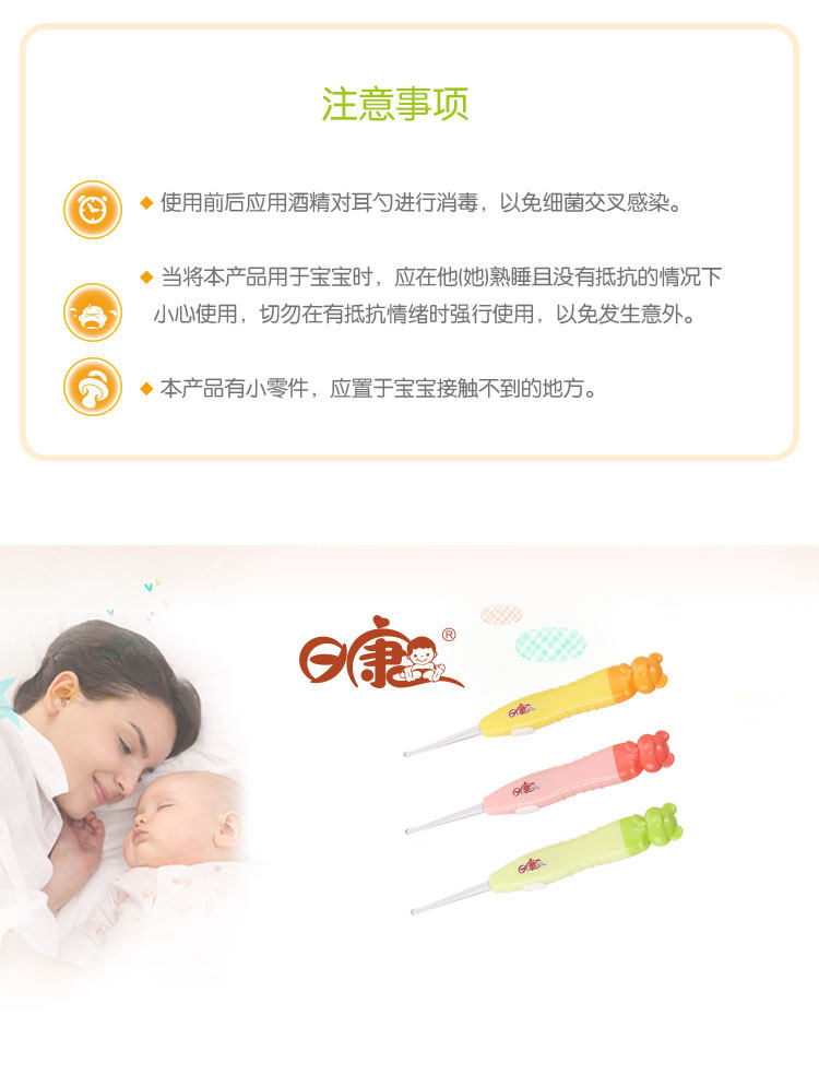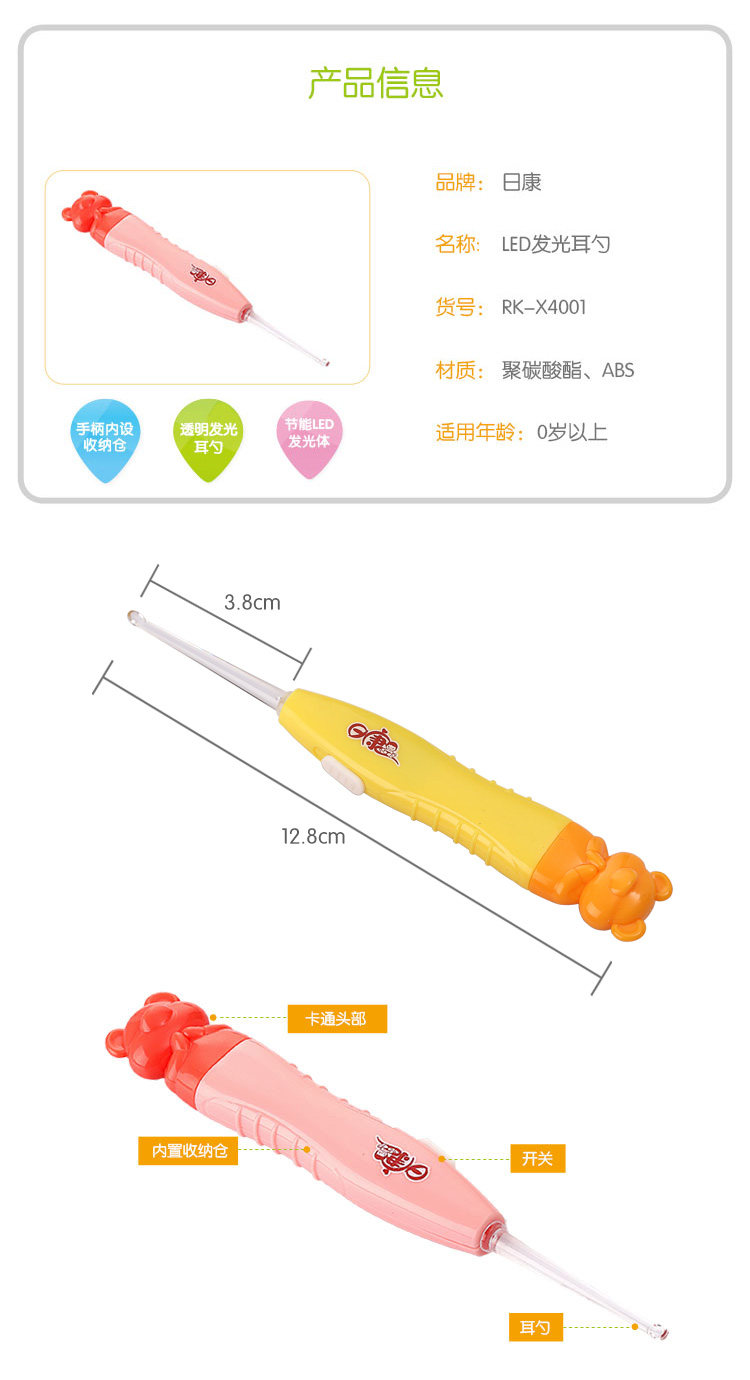 日康婴儿发光耳勺宝宝挖耳勺小孩掏耳勺带灯LED儿童挖耳器耳朵扒