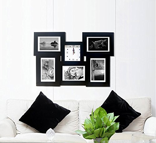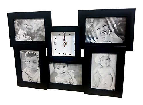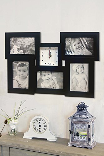 Clock picture frame collage, Black, Holds 5 4" by 6" prints Modern design, block frames