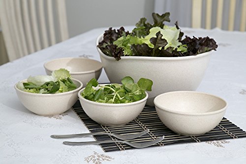 This set of wpc (wood plastic composite) bowls are a sustainable and innovative way to serve friends and family. Contains one large, deep, and versatile serving bowl, great for salads, and four durable individual 16oz bowls. As always, the BPA free products are dishwasher and microwave safe.Feature