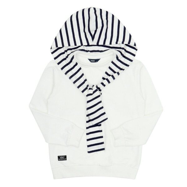 어깨 부분의 매듭 배색이 포인트인 맨투맨 티셔츠. 데님과 매칭하기 좋으며 토들러 사이즈로 구성되어 있어 봄 나들이 시즌에 착용 하기 좋은 상품.