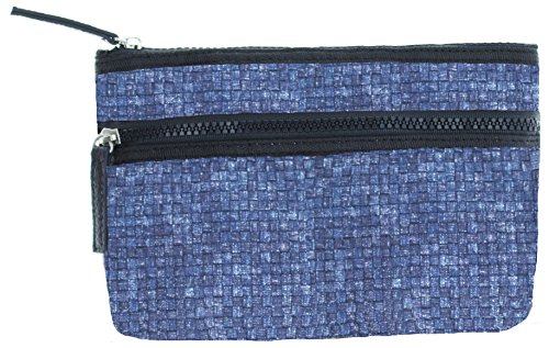 Made with the very popular Bernie Mev woven look, this sleek cosmetic purse includes an exterior pouch to help you find jewelry and cosmetics that much easier. A great bag!Feature