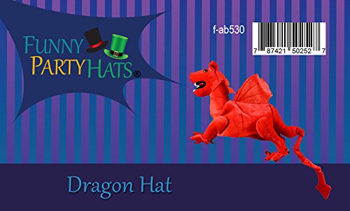 -. Binding : Toy -. Brand : Funny Party Hats -. EAN : 0787421502527 -. Feature : This Red Winged Creature is Set for Adventure. Perfect for Medieval Mischief / A Great Accessory for a Fantasy Costume. Capture the Imagination with this Serpentine Creature / Imagine Taking Over a Fairy Tale Castle with this Magical Creature / A Fun Halloween Hat Perfect for a Medieval Legend Come to Life / This Plush Dragon Hat is 18" High Nose to Toes and 30" LonFangs to Tail Fits Most Teens and Adults, Size 22" Diameterg -. IsAdultProduct : 0 -. Label : Funny Party Hats -. Manufacturer : Funny Party Hats -. PackageQuantity : 1 -. ProductGroup : Toy -. ProductTypeName : TOYS_AND_GAMES -. Publisher : Funny Party Hats -. Studio : Funny Party Hats -. Title : Dragon Hat - Dragon Costume - Novelty Hats - Red Dragon Hat by Funny Party Hats -. UPC : 787421502527