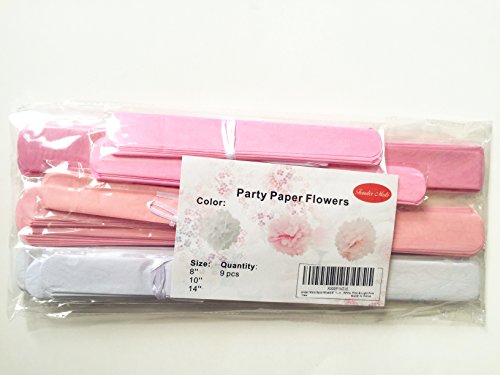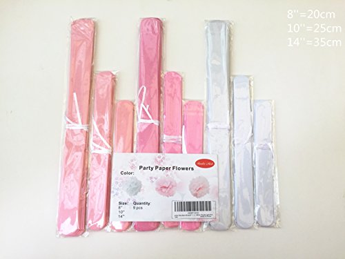 Fonder Mols 9pcs Mixed 8'' 10'' 14'' Tissue Paper Pom Poms Flower Wedding Party Baby Girl Room Nursery Decoration - White, Pink & Light Pink