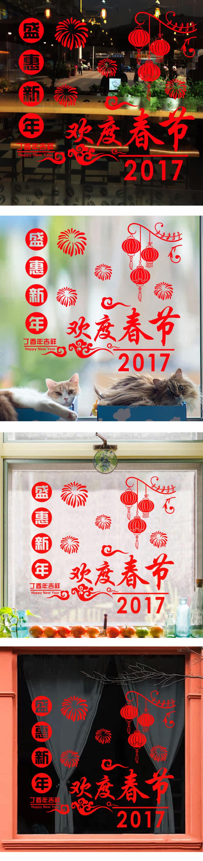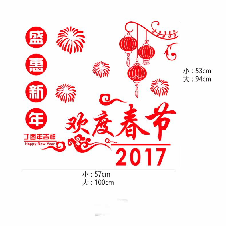 欢度春节大型新年橱窗组合橱窗玻璃贴纸春节灯笼烟花新布置装饰贴