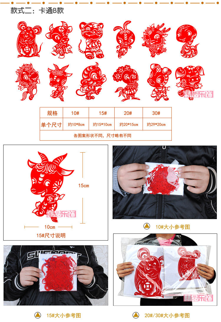 Cartoon B has 6 sizes: 7 # about 7 * 5cm, 10 # about 10 * 8cm, 15 # about 15 * 10cm, 20 # about 18.5 * 14cm, 30 # about 29 * 20cm, 40 # about 37 * 26cm,