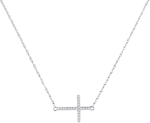 -. Title : 10kt White Gold Womens Round Diamond Sideways Horizontal Cross Religious Pendant Necklace 1/20 Cttw = 0.06 Cttw (I2-I3 clarity; J-K color)