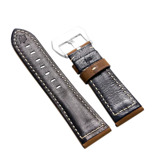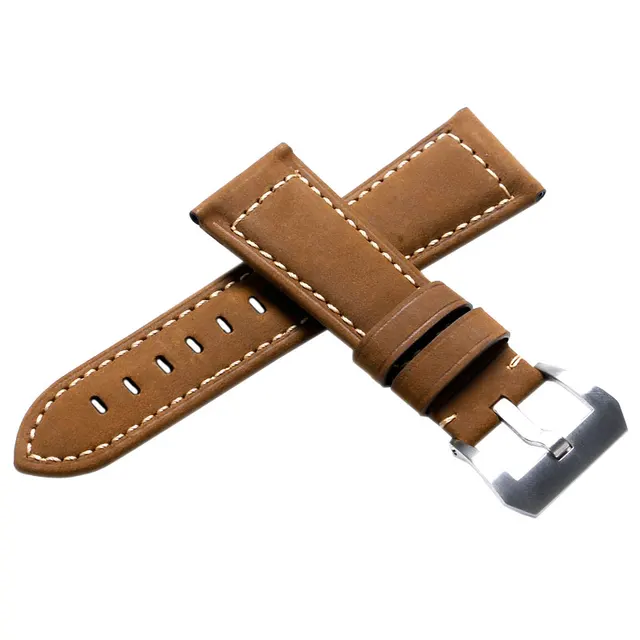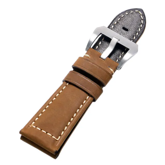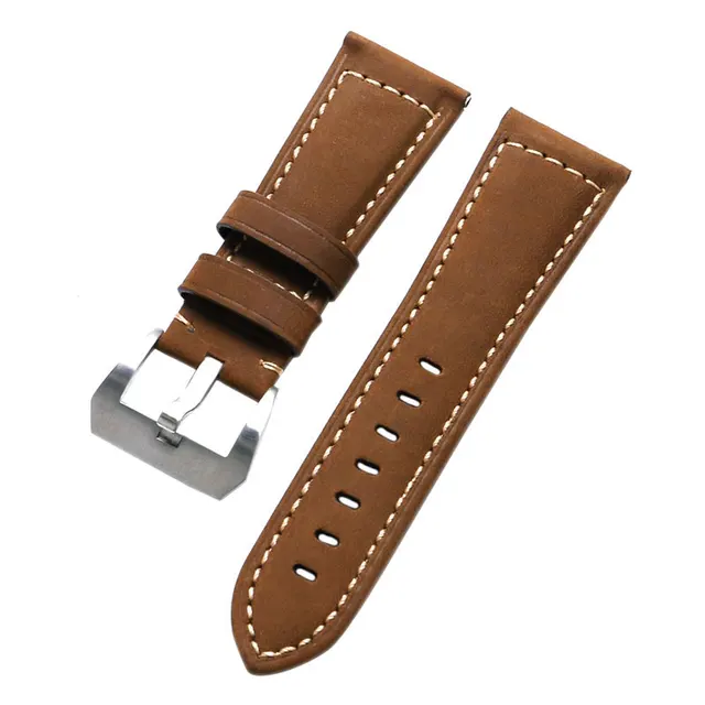 | [해외]Elegan 높은 품질 24 미리메터/26 미리메터 갈색 미친 말 정품 가죽 시계 스트랩 밴드 실버 버클 비즈니스 스포츠 시계 |