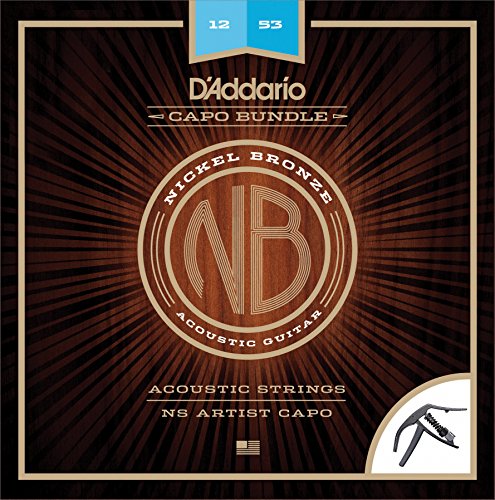 D'Addario NB1253 Nickel Bronze Acoustic Guitar Strings, Light & NS Artist Capo Bundle