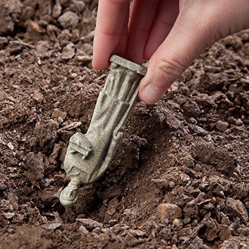 The statue is buried upside down in the front yard with the feet pointing to heaven.