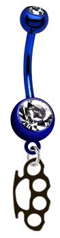 Brass Knuckles Black Metal Charm on Premium BLUE Titanium Anodized Sexy Cute Belly Button Navel Ring