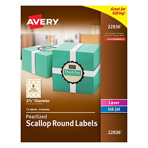 Avery Pearlized Ivory Scallop Round Labels, 2.5-Inch Diameter, Pack of 72 (22836)