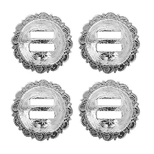 Set of 4, 1-1/4" Saddle Bright Silver Round Slotted Berry Concho