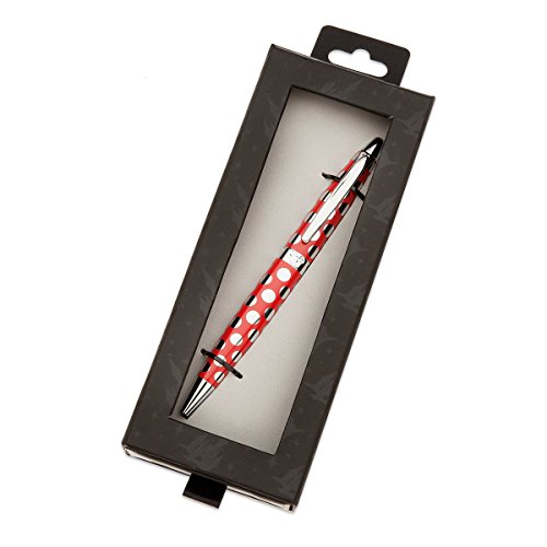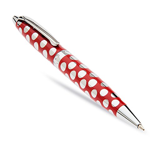 - Ballpoint pen - Silvertone band with embossed mouse icons - High gloss red finish case with silvery polka dot pattern - Twist mechanism