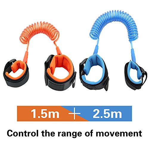 -. Feature : SAFE FOR KIDS: Steel wire inside and PU cord are strong and firm, it gives kids independence but keeps them safe at the same time. / FLEXIABLE, DURABLE AND ENOUGH LONG: 2.5 meter/8.2ft strong PU cord wrapped with stainless steel + 360 degrees rotating stainless steel plus DOUBLE anti-P.R.Icking tape / SKIN-FRIENDLY: Comfortable to wear for both adult and child, Use eco-friendly fabric which doesn't stimulate the skin. A layer of sponge inside to protect the child's wrist .There are double tape for kids hand, it will protect child's wrist from sharp and hurt. / Have two comfortable cuffs, soft and smooth, one for adult, one for kid / Great for use when you go to square, park, supermarket and airport with your kids