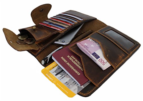 Travel Wallet Corno d´Oro Echt-Leder Herren Damen Organizer Reisebrieftasche Geldborse Portemonnaie Portmonee Kredit-Kartenetui Herrentasche iPhone Hulle Case aus hochwertigem Lede