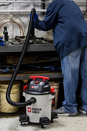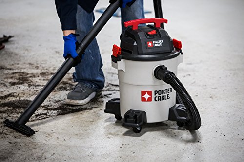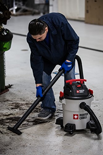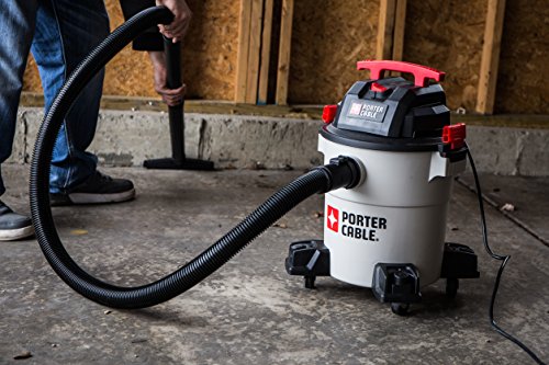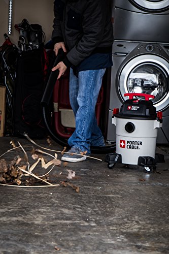 The Porter-Cable 9-gallon, 5 peak horsepower, wet/dry vacuum features a powerful heavy-duty motor, providing maximum suction power for heavy-duty pickup. Use for both wet and dry pickups. Powerful blower port instantly converts the wet/dry vacuum into a power blower. Strong handle for easy transport. Large water-resistant switch for safe and quick access. Convenient, built-in 10-foot power cord wrap. Accessory storage casters keep your tools organized and provide ease of movement in any direction. Porter-Cable wet/dry vacuums provide superior performance in any environment. Includes a 3-year limited warranty. Extended warranties available. Accessories included: 8-foot flexible hose, extension wands, cartridge filters, round brush, ultility nozzle, disposable dust bag and floor brush with wheels.Feature