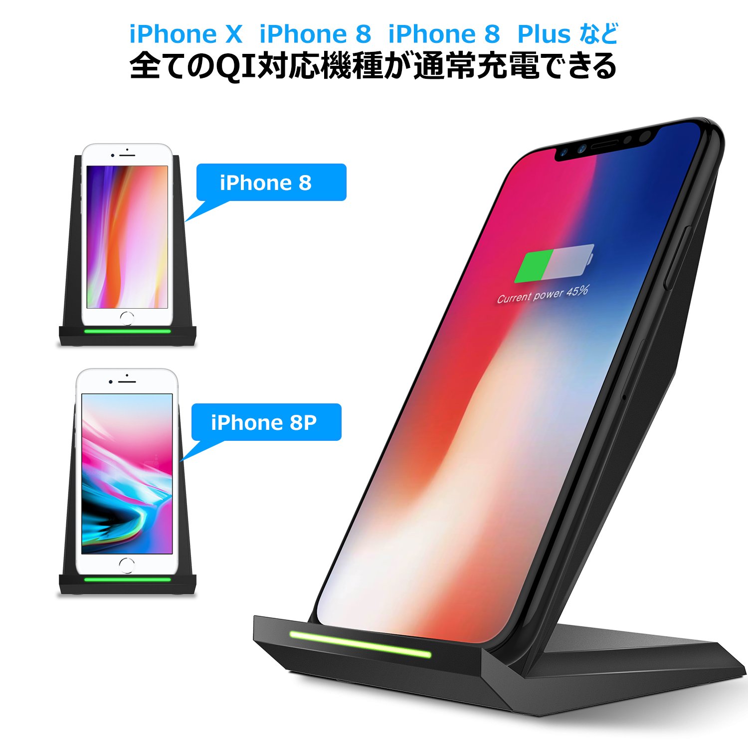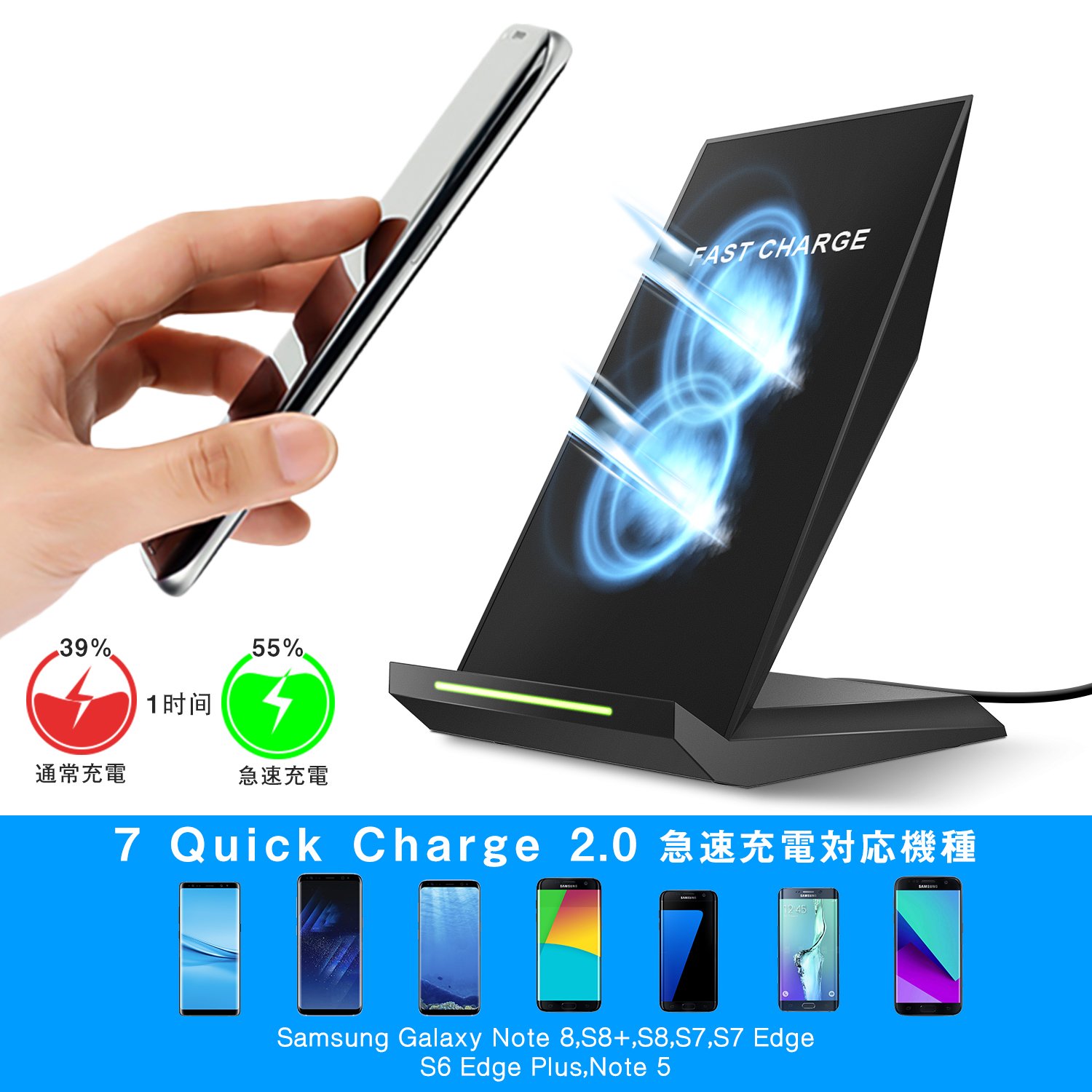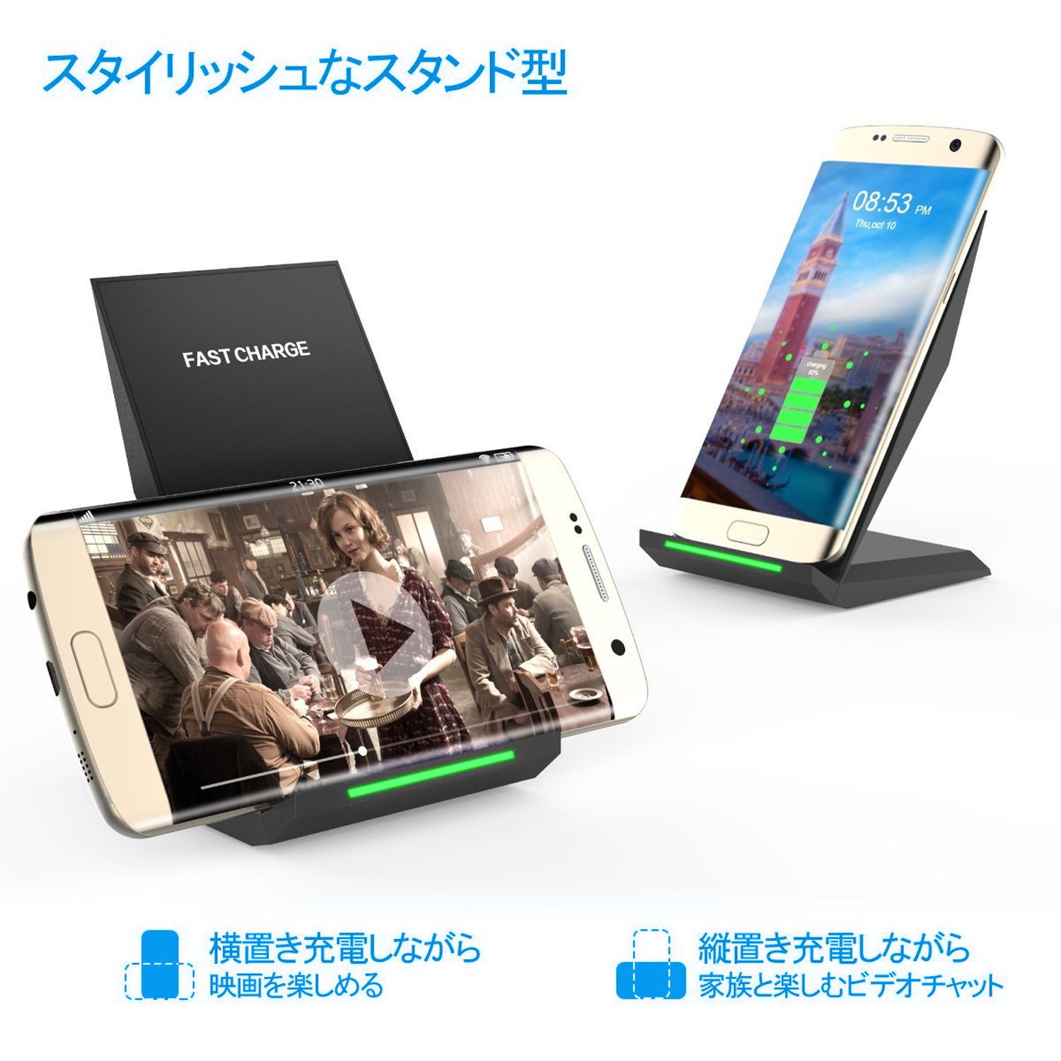 ● Qi Wireless Charger is a stand design so it can be placed vertically, horizontally, freely.