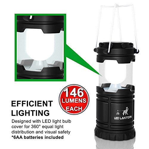 - ULTRA BRIGHT! 360 degree 146 lumen led camping lanterns - highest quality ce & rohs approved military grade abs material is the best camping lantern accessories flashlight survival gear & camping equipment gift set that is built to last. Designed for you - collapses into small bundle for easy control and storage - excellent for outdoor furniture [6 aa batteries included]