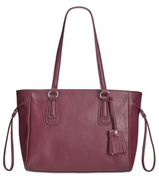 Stylish details like a fringe tassel and adjustable hanging sliders add a sense of playful polish to this spacious Giani Bernini tote, crafted from luxe textured leather.17-1/2"W x 10-1/2"H x 3-1/2"D