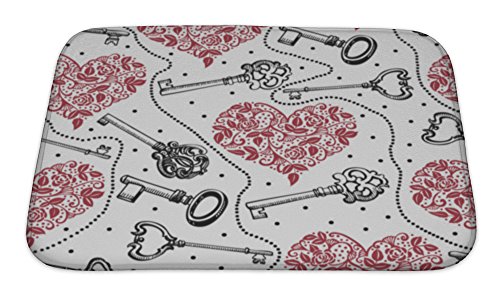 Gear New No Slip Microfiber Memory Foam Vintage Pattern with Keys & Hearts Bath Rug Mat, 24" X 17"