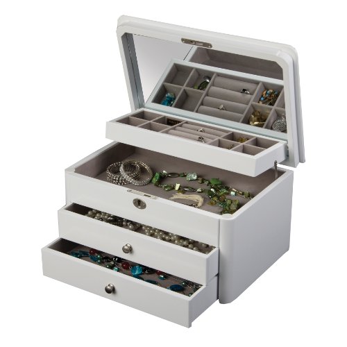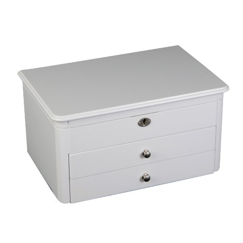 -. Binding : Kitchen -. Brand : Mele & Co. -. Color : White -. Department : Accent -. EAN : 0739175114778 -. Feature : Locking jewelry box in P.R.Istine white finish with tassled key / Lift top with full interior mirror / Convenient automatic tray / Main compartment and two drawers offer generous open storage / Hand lined in sumptuous dark gray sueded fabric -. IsAutographed : 0 -. Label : Mele & Co. -. Manufacturer : Mele & Co. -. Model : 0078911 -. MPN : 0078911 -. NumberOfItems : 1 -. PackageQuantity : 1 -. PartNumber : 0078911 -. ProductGroup : Home -. ProductTypeName : HOME -. Publisher : Mele & Co. -. SKU : JM-78911 -. Studio : Mele & Co. -. Title : Mele & Co. Katherine Locking Jewelry Box with Automatic Tray in White Finish -. UPC : 739175114778