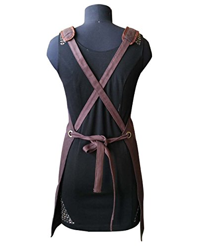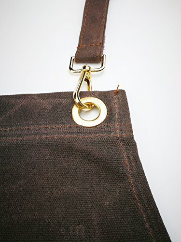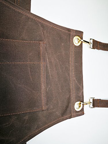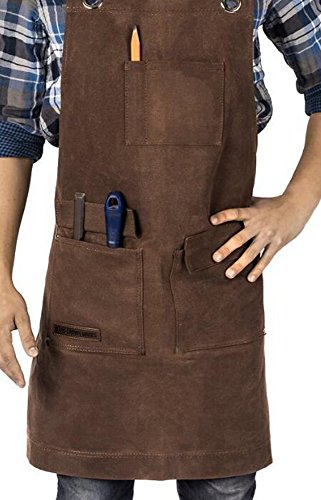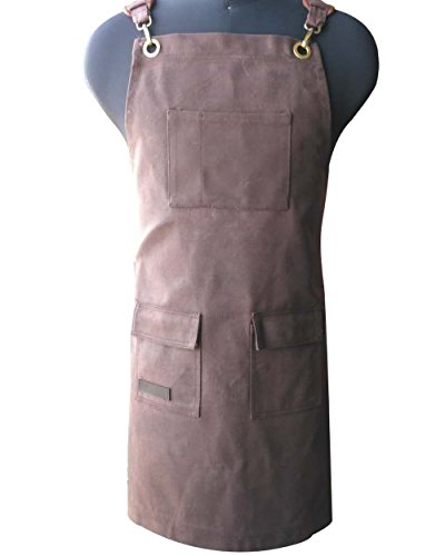 To Joy Trendy design Waxed Canvas Work Apron with Tool Pockets/Lobster Clasps and buckles Cross-Back Straps and Adjustable bands up to XL for Women & Men. (luxurious-brown)